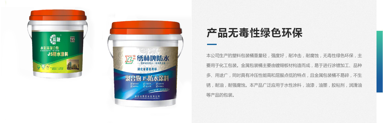 本公司生產(chǎn)的塑料包裝桶重量輕,強度好,耐沖擊,耐腐蝕,無毒性綠色環(huán)保,主要用于化工包裝。金屬包裝桶主要由鍍錫板材構造而成,易于進行涂鍍加工、品種多、用途廣,同時具有沖壓性能高和屈服點低的特點,且金屬包裝桶不易碎,不生銹,耐油,耐強腐蝕。本產(chǎn)品廣泛應用于水性涂料,油漆,油墨,膠粘劑,潤滑油等產(chǎn)品的包裝。